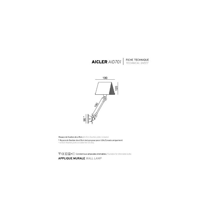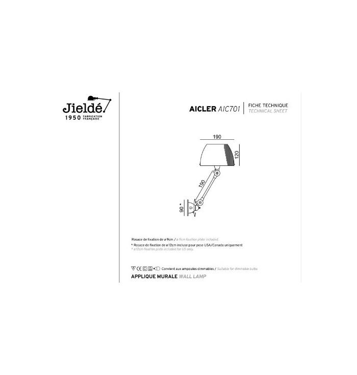 Lampada da parete - 1 braccio - Aicler - NUOVI COLORI - Jielde