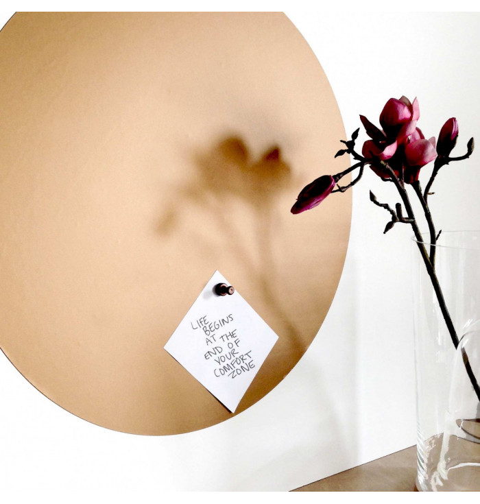 Un adesivo magnetico rotondo e autoadesivo (Ø 60 cm) disponibile in due colori, dove puoi appendere appunti e foto con magneti.