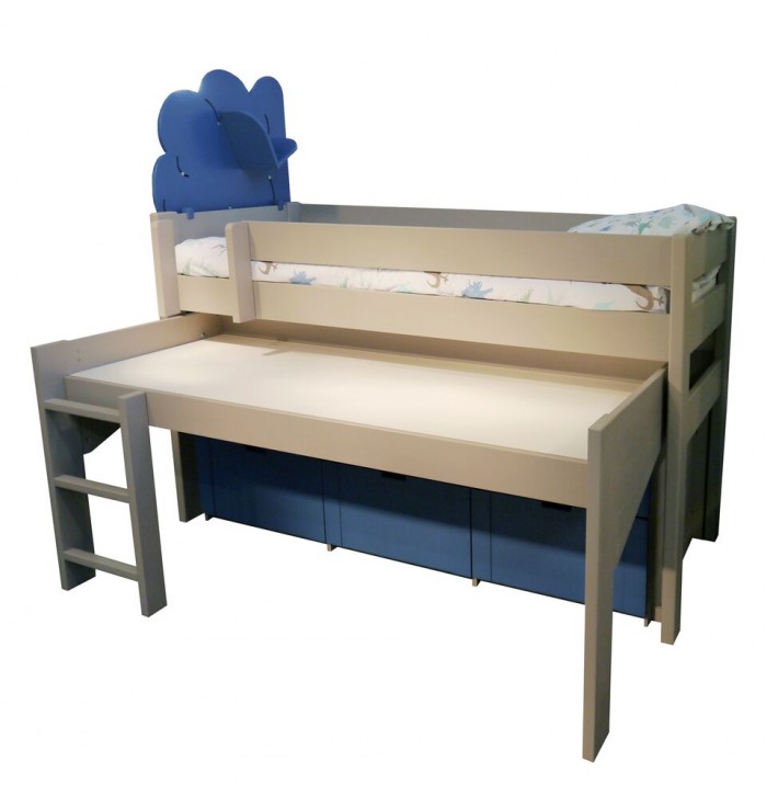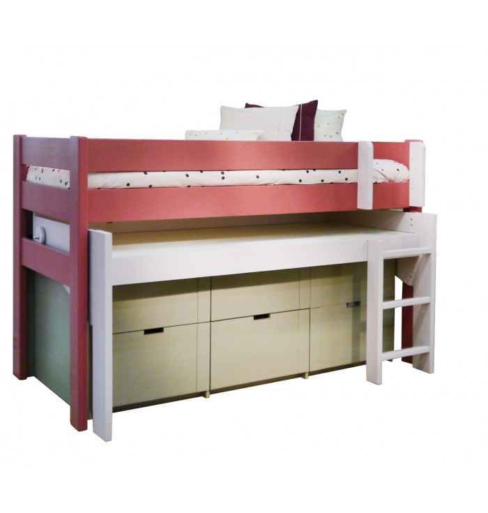 Letto a soppalco con scrivania e cassettiera 5 cassetti - Dominique - Mathy by Bols