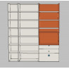 Colori Struttura: Nuvola 50 Fianchi e ripiani interni: Papaya 27 Dettagli e cassetti interni: Mirtillo 78 Maniglie mix: Zenzero 65, Denim 76, Pistacchio 69, Basalto 52, Papaya 27