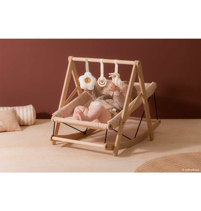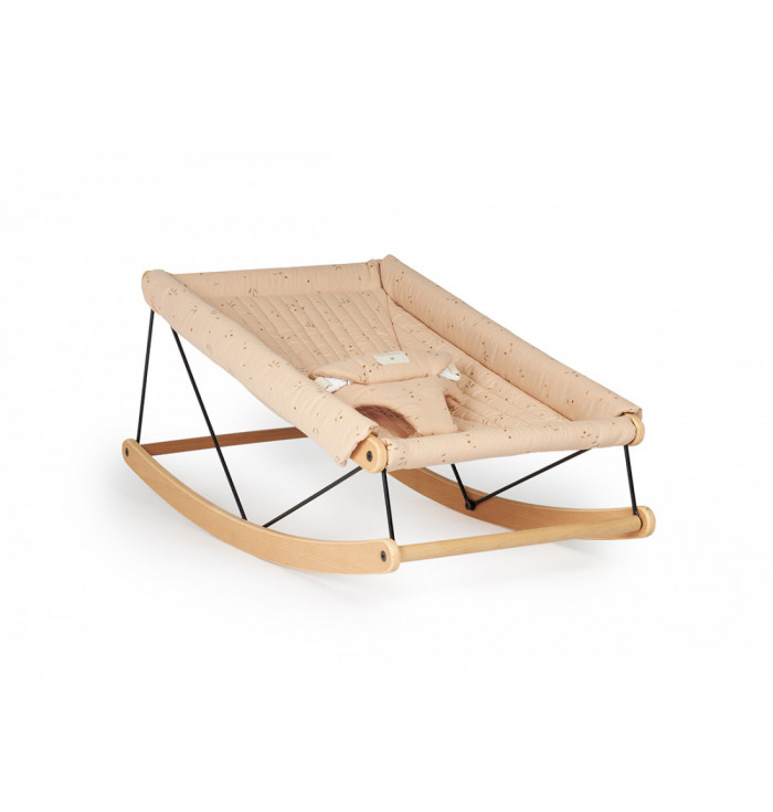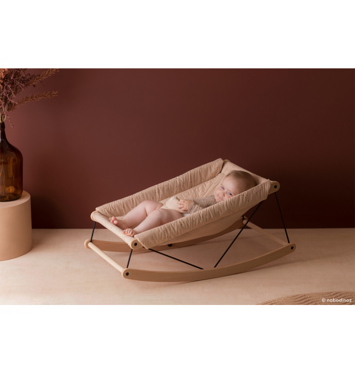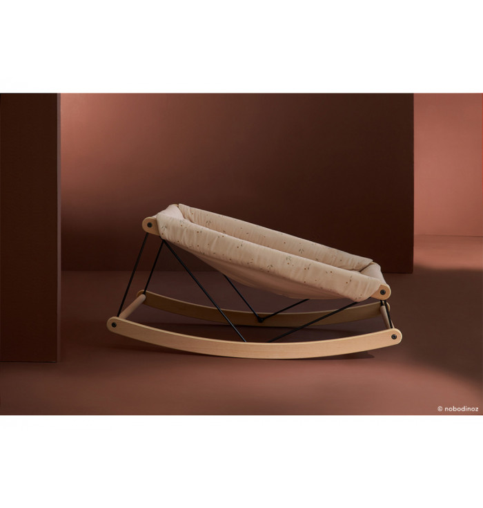 Growing Green, la linea di mobili per bambini in continua evoluzione dal design raffinato e materiali naturali. Accogli il tuo bambino all'interno di un bozzolo sicuro e accogliente di morbidezza e offre un movimento a dondolo fluido e rilassante. Molto leggero, è facile da maneggiare. Realizzato con materiali naturali, in legno di faggio con vernice opaca e cotone organico trapuntato, è solido e spazioso, perfetto per abbracciare il tuo bambino fino a 9kg. La fodera in cotone biologico si fissa alla struttura in legno con cerniere molto resistenti. Il materiale in legno di faggio naturale combinato con la finitura ultra opaca con vernice a base d'acqua conferisce a questa sdraietta il tocco di design più raffinato.