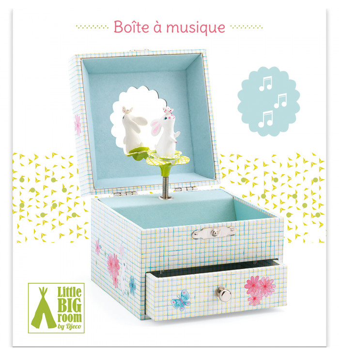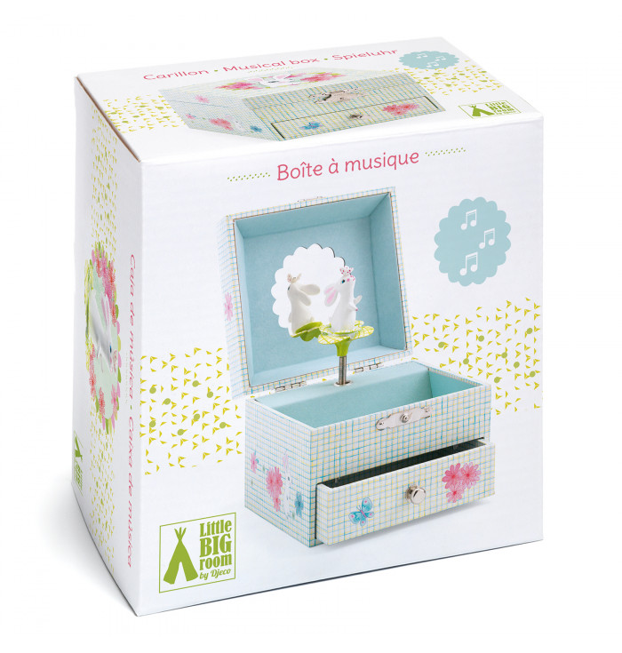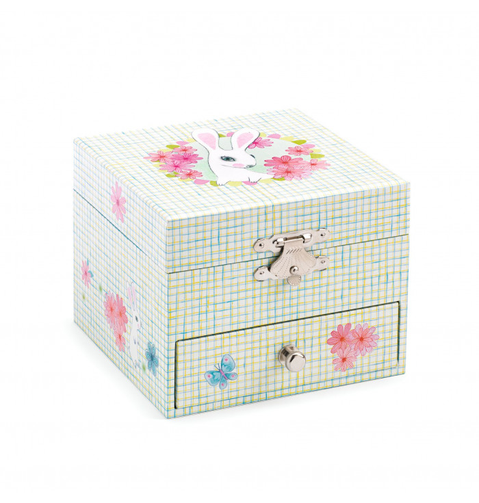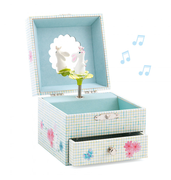 Bunny's Song è un carillon splendidamente illustrato con un cassetto per conservare i suoi gioielli e segreti.