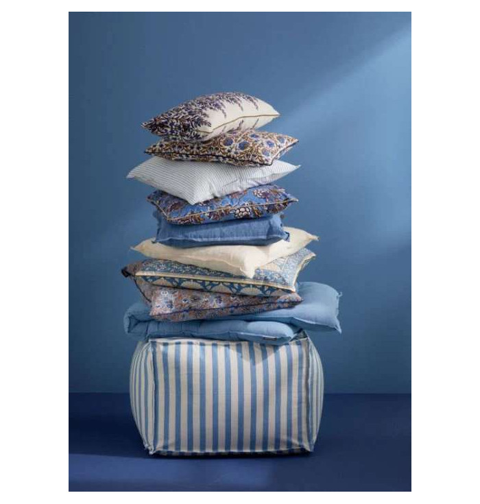 Questa elegante fodera presenta una stampa a blocchi fatta a mano, perfetta per creare un'atmosfera accogliente e rilassante nella tua casa.